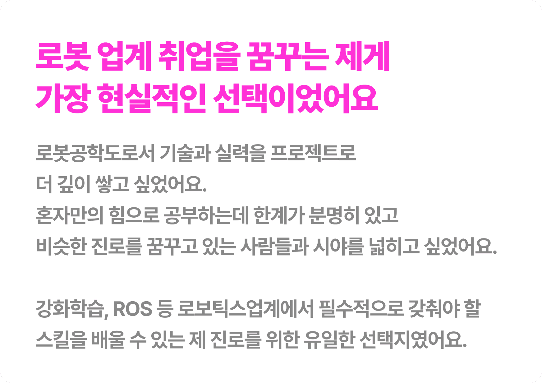 실제 실무 관점에서 저희가 부족한 부분을 구체적으로 짚어주셔서 많은 도움이 되었습니다. 단순한 코드 수정이 아니라, 왜 이러한 방식이 더 효과적인지, 실무에서 어떤 방식이 더 효율적인지에 대한 깊이 있는 피드백을 받을 수 있었습니다.
